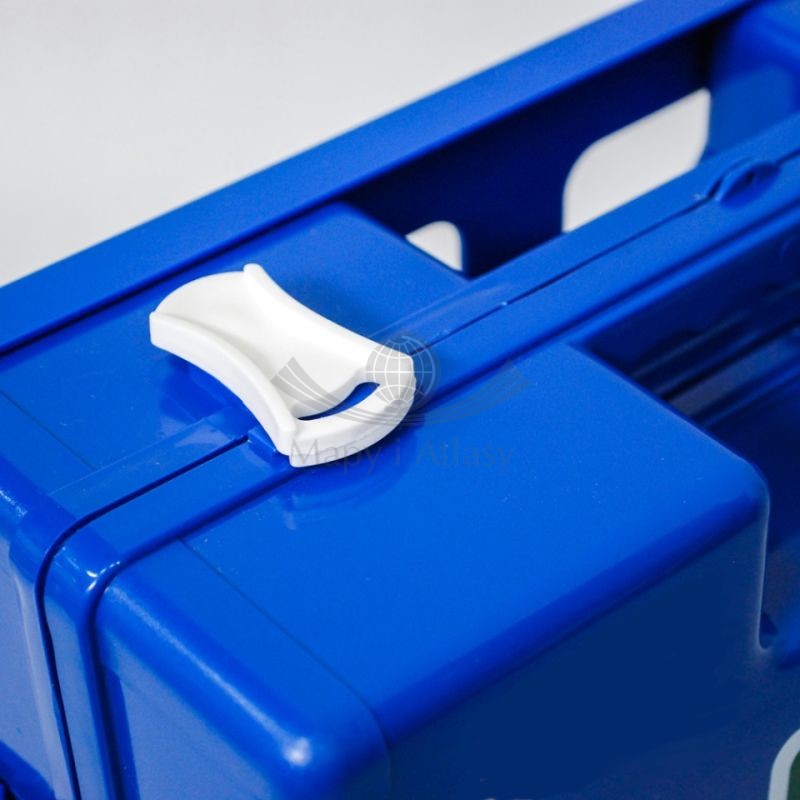 Apteczka dodatkowo posiada z tyłu stelaż mocujący do ściany.