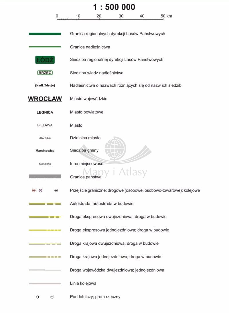 Polska 1:500 000. Arkusz, mapa ścienna. Podział organizacyjny lasów państwowych