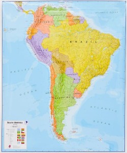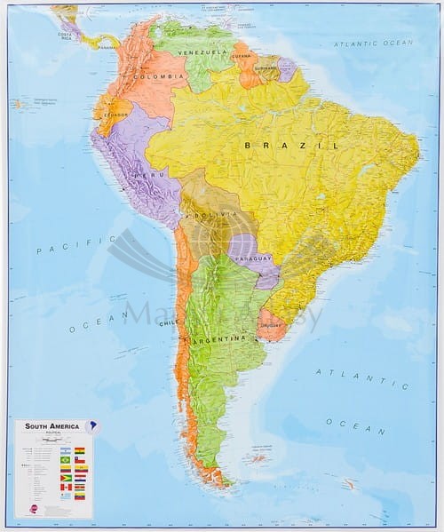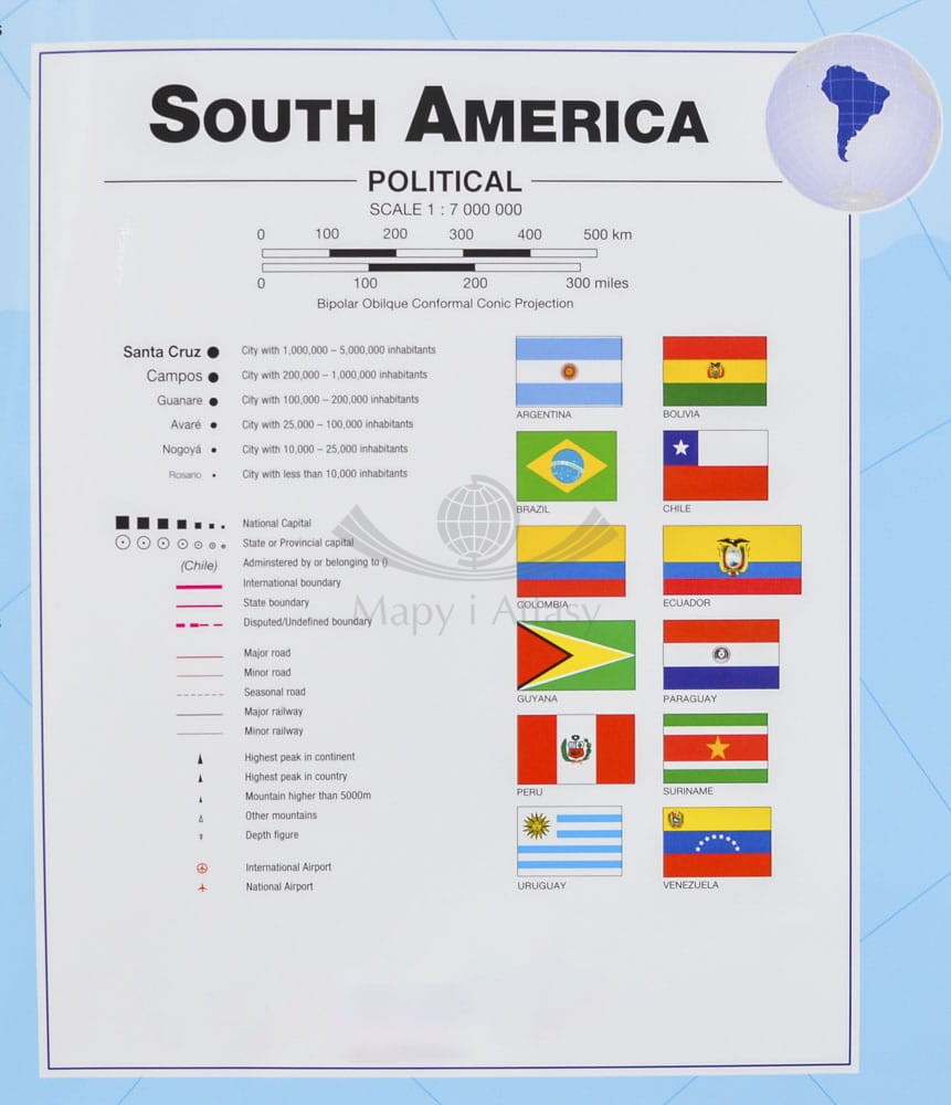 Arkusz politycznej mapy ściennej Ameryki Południowej w skali 1:7 000 000 wydawnictwa Maps International.