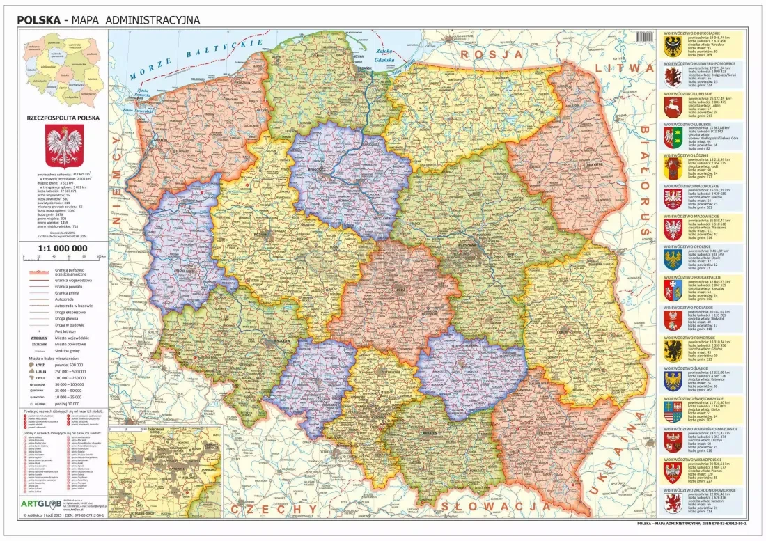 Arkusz administracyjnej mapy Polski w skali 1:1 000 000 wydawnictwa ArtGlob.