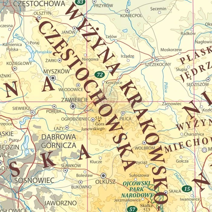Na drugiej stronie znajduje się mapa ogólnogeograficzna (fizyczna) Polski, na której przedstawiono ukształtowanie powierzchni za pomocą metody hipsometrycznej, rozmieszczenie obiektów hydrograficznych, granice województw oraz aktualną sieć dróg i sieć osadniczą z uwzględnieniem wielkości miast.