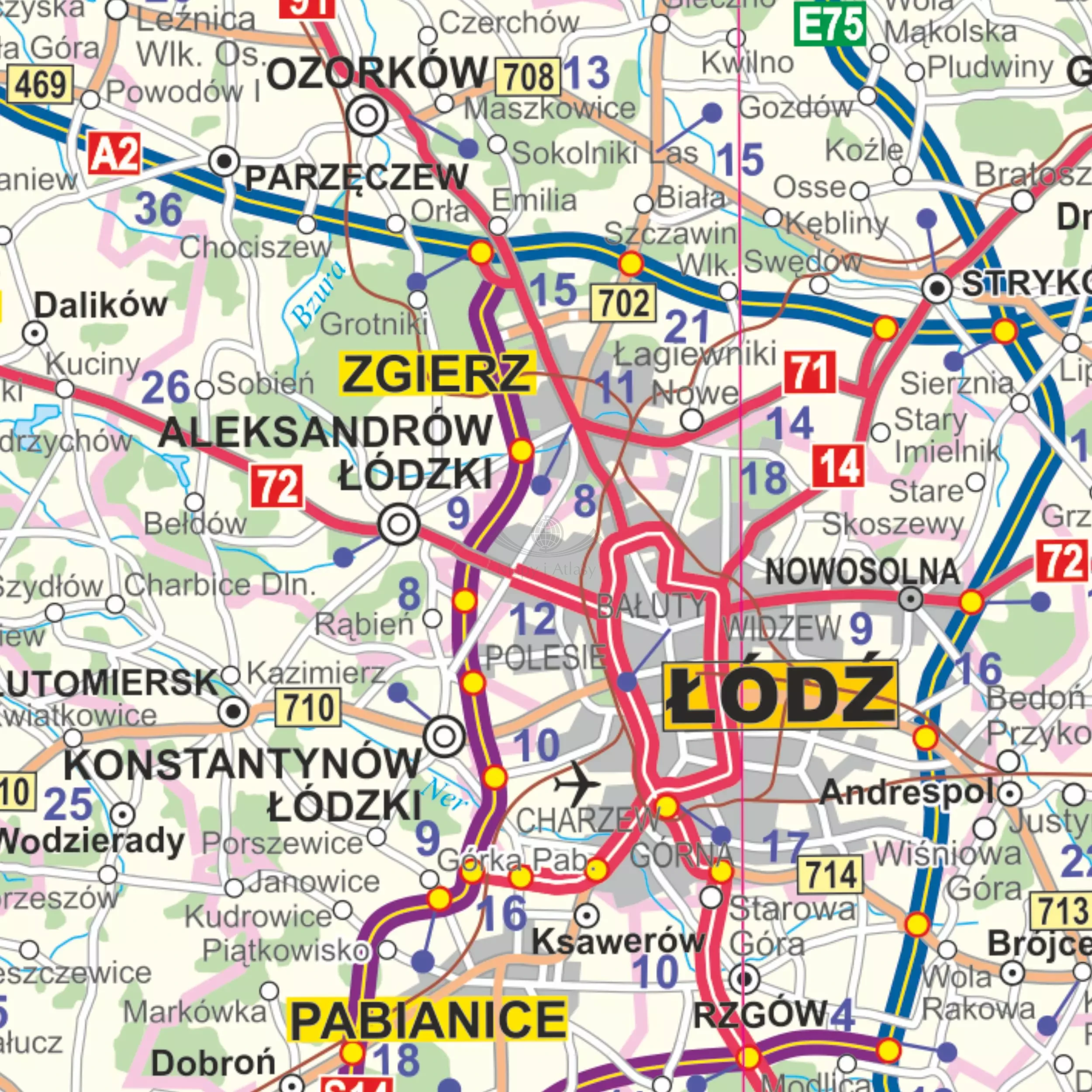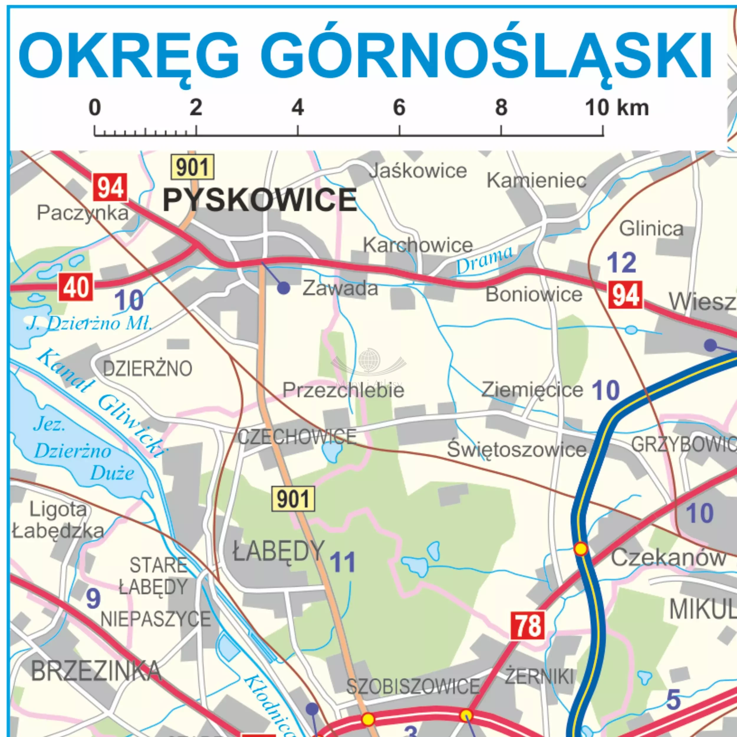 Mapa przedstawia bogatą i aktualną sieć dróg i autostrad oraz miejscowości. Dodatkowo naniesiono odległości przy drogach. Mapa zawiera również sieć hydrograficzną, lasy i Parki Narodowe, linie kolejowe, drogowe i kolejowe przejścia graniczne oraz przeprawy promowe. Dodatkowo w dolnej części umieszczono mapę Górnośląskiego Okręgu przemysłowego w skali 1:150 000 oraz tabelę przybliżonych odległości pomiędzy miejscowościami w Polsce.