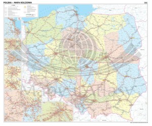 Arkusz kolejowej mapy ściennej Polski w skali 1:500 000 wydawnictwa ArtGlob.