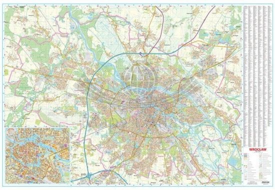 Arkusz mapy ściennej Wrocławia w skali 1:15 000 wydawnictwa Eko-Graf.