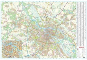 W lewym dolnym rogu umieszczono plan centrum miasta. Z prawej strony mapy znajduje się indeks ulic.