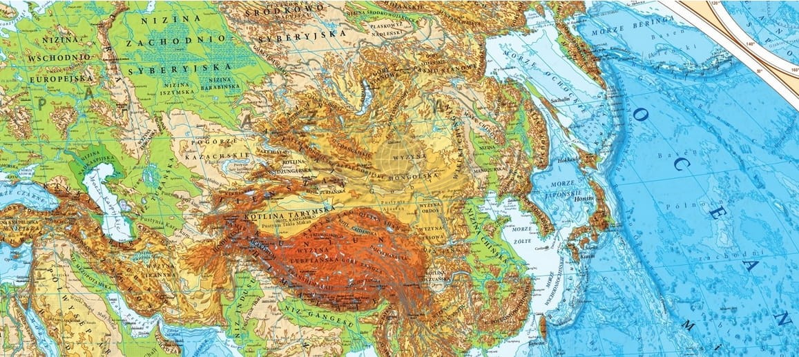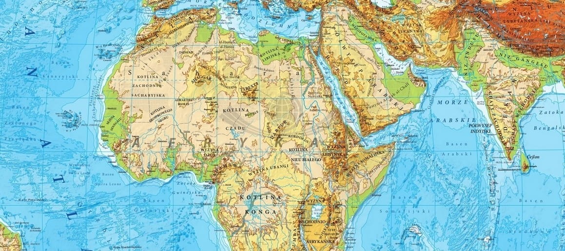 Świat 1:18 000 000. Arkusz, mapa ścienna fizyczna, ukształtowanie powierzchni