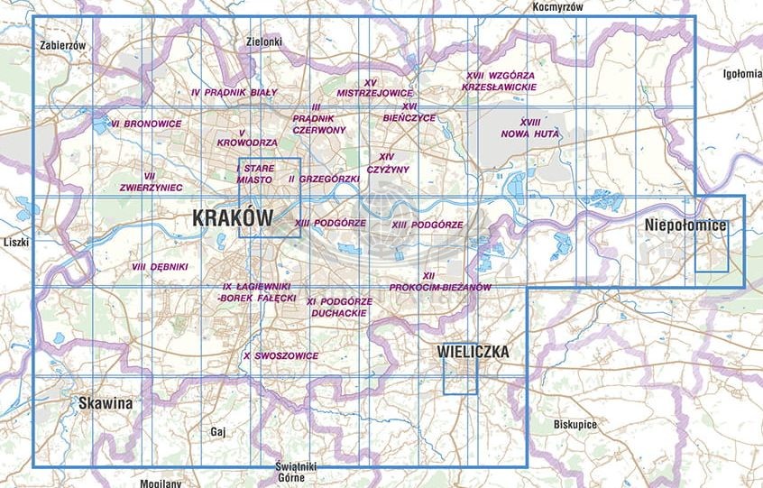 - plan centrum Krakowa w skali 1:12 000,