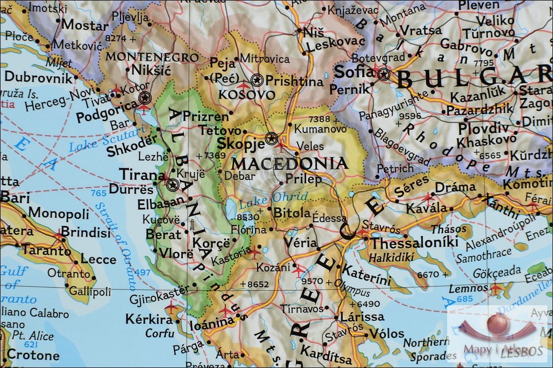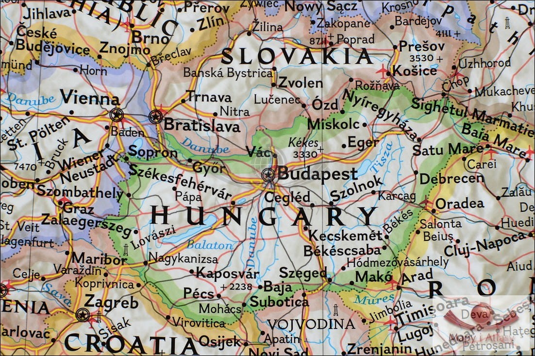 Mapa ścienna z elementami mapy fizycznej, drogowej i administracyjnej. Stylizacja charakterystyczna dla National Geographic. Kolorystyka w wersji klasycznej.