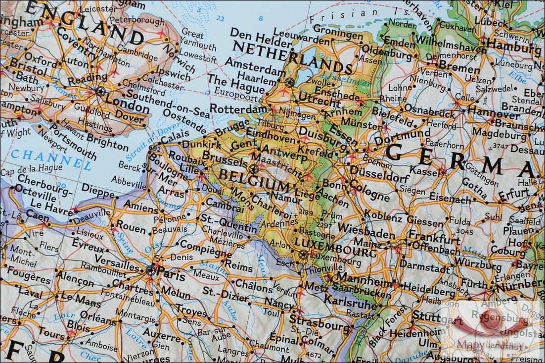 Mapa ścienna Europy. Wersja superduża, do naklejania na ścianę. Zalaminowane arkusze Mapa z elementami mapy fizycznej, drogowej i administracyjnej.