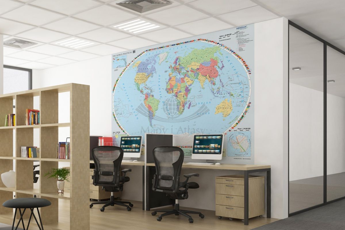The World Political / Świat. Fototapeta samoprzylepna. Mapa polityczna w języku angielskim