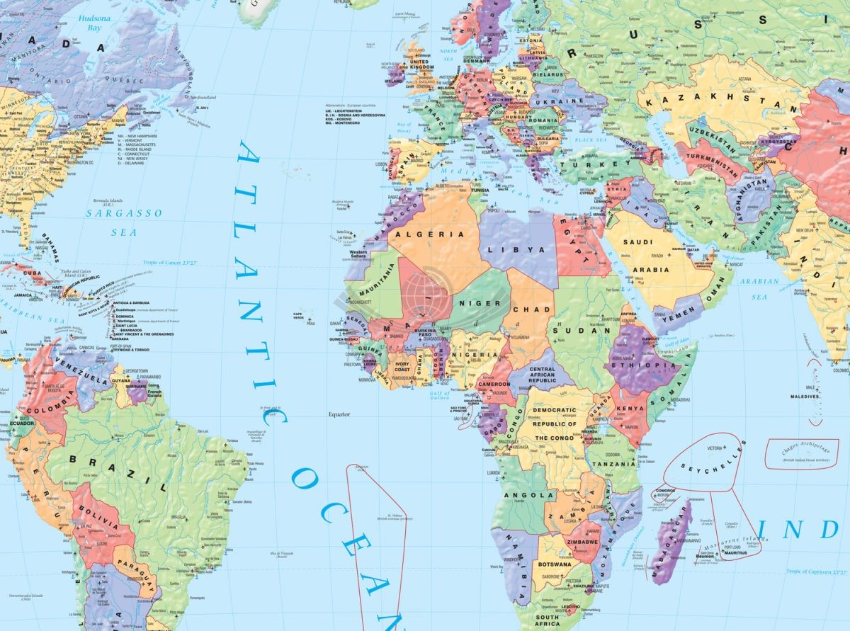 Fototapeta mapa szkolna przedstawiająca najbardziej aktualny podział polityczny świata.