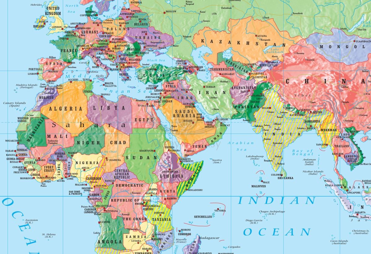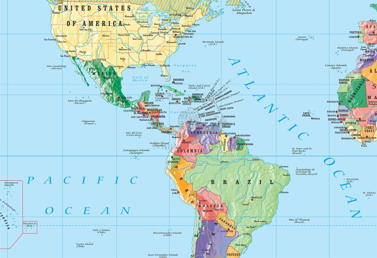 World political (Mercator)/ Świat. Fototapeta samoprzylepna. Mapa polityczna w języku angielskim