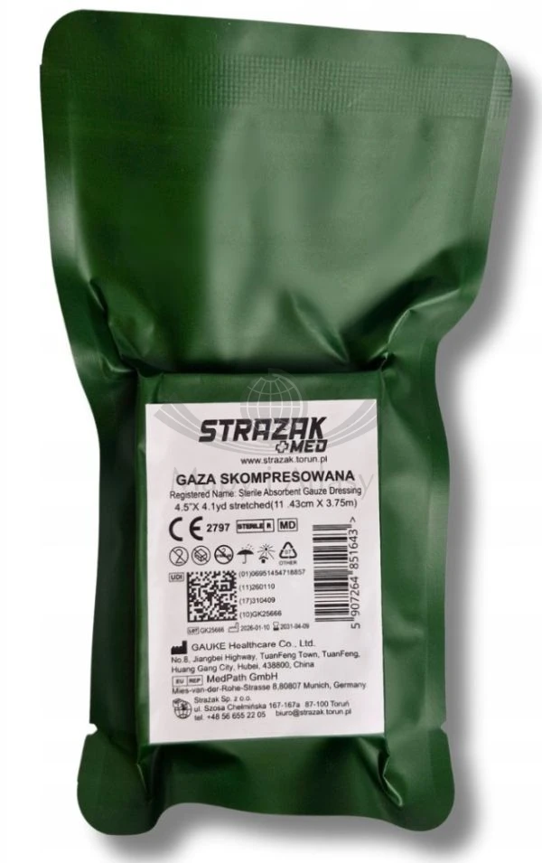 Gaza jest skompresowana, dzięki czemu zmieści się w każdej apteczce lub plecaku ratowniczym. Po rozwinięciu doskonale wypełnia rany, zapewniając mocny ucisk. Produkt jest sterylny i gotowy do natychmiastowego użycia, nawet w ekstremalnych warunkach.