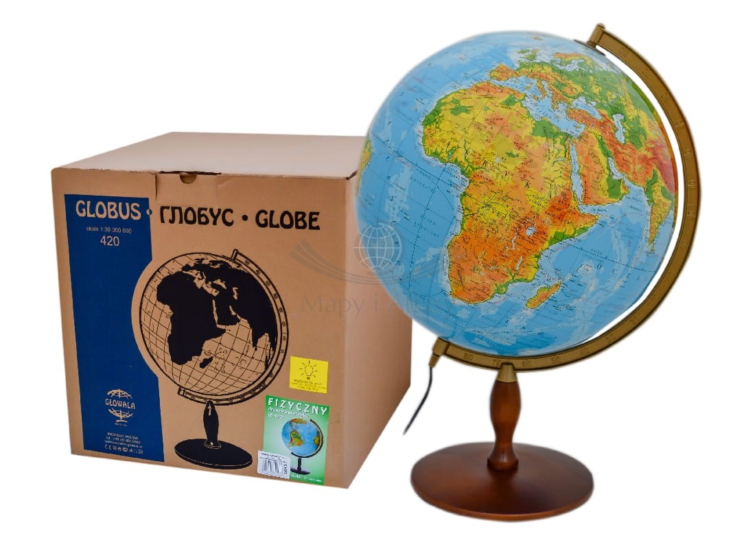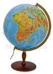 Globus fizyczny 42 cm. Podświetlany. Drewniana podstawka