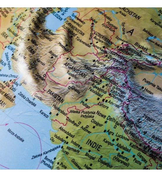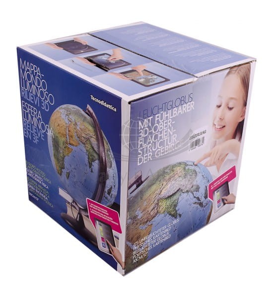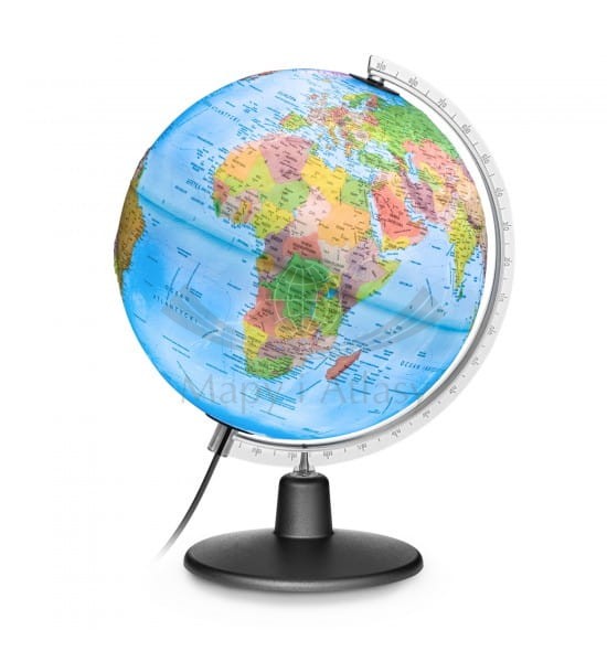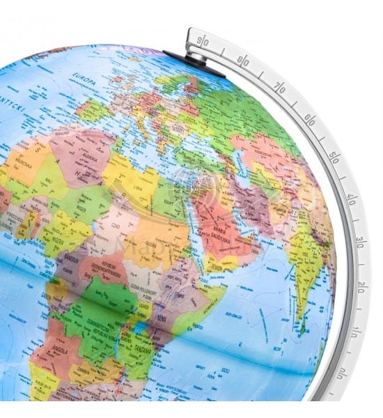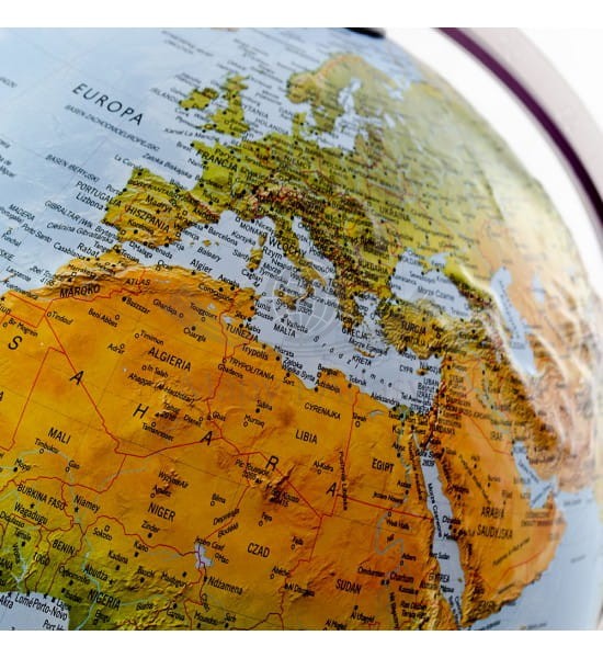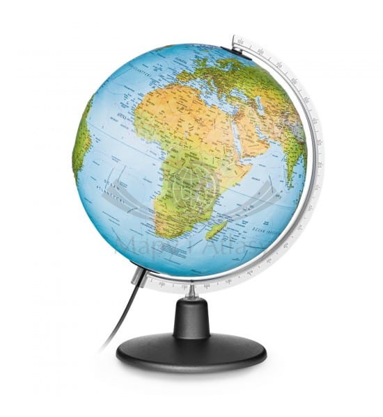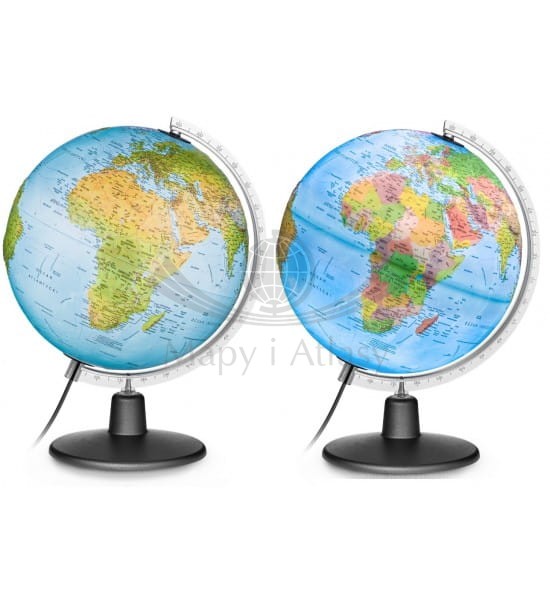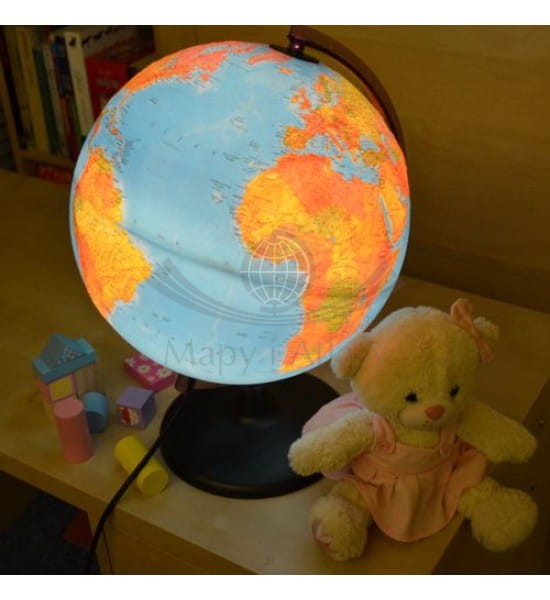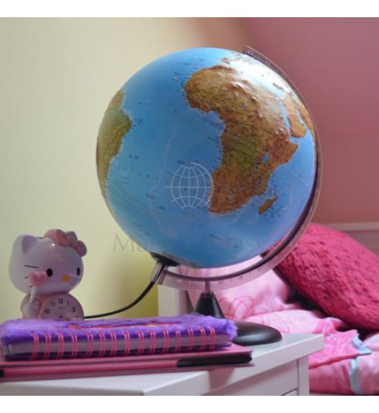 Piękny globus plastyczny produkcji włoskiej. Wyniosłości terenu zaznaczone są wypukłościami na globusie. Ładna kolorystyka wyróżniająca się na tle globusów innych producentów. Szczególną atrakcję o walorach poznawczych stanowi fakt, że po podświetleniu na mapie fizycznej pojawiają się dodatkowe informacje w postaci mapy politycznej. Dyskretne podświetlenie nadaje pokojowi, salonowi lub sypialni ponadczasowy styl, podkreślając harmonię pomieszczenia. Dzięki temu może posłużyć jako oryginalna lampka, wprowadzając Cię w sny o podróżach.
