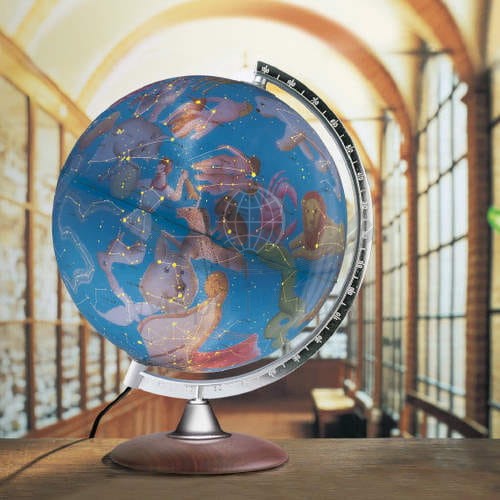 Chodzisz z głową w chmurach i potrafisz nocą bez celu zapatrzeć się w niebo? W takim razie globus astralny to coś właśnie dla Ciebie! Podświetlany globus astralny pokazuje konstelacje gwiazd. Nazwy gwiazdozbiorów zamieszczono w wersji naukowej i astrologicznej, a po włączeniu podświetlenia ukazują się piękne zarysy znaków zodiaku. Rozpraszane przez globus dyskretne światło nadaje pomieszczeniu przytulny klimat. Dzięki czemu może on posłużyć jako oryginalna nocna lampka, wprowadzająca w sny o gwiazdach.