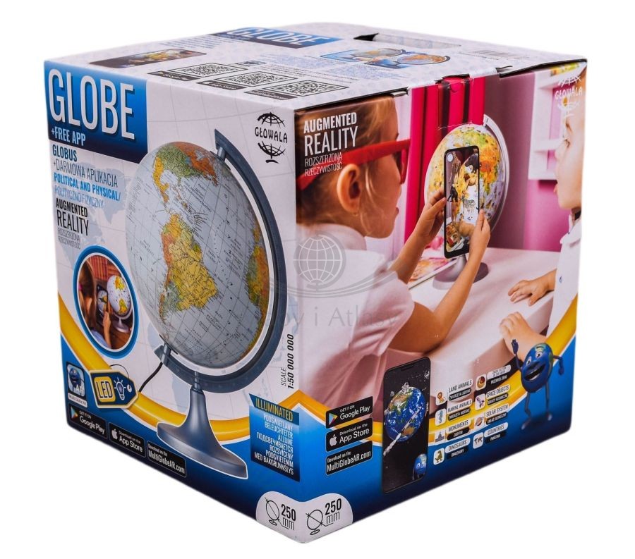 Globus pozwala na korzystanie z darmowej aplikacji Multi Globe AR, prezentującej dodatkowe treści na globusie.