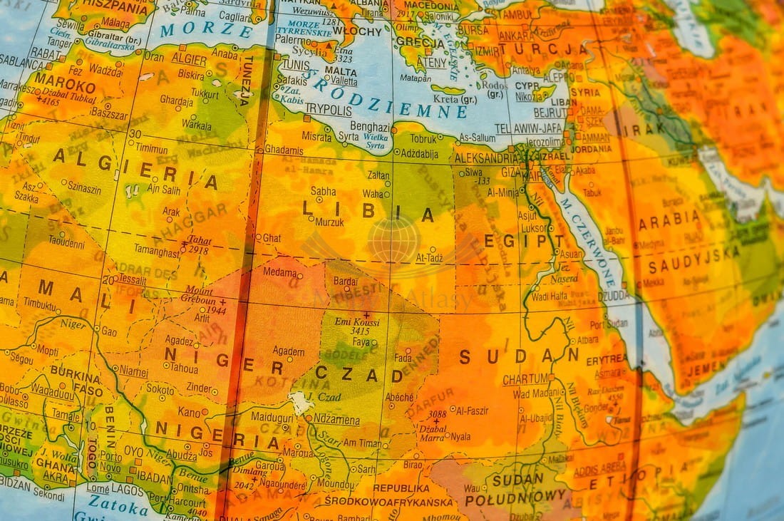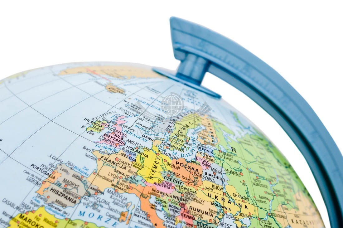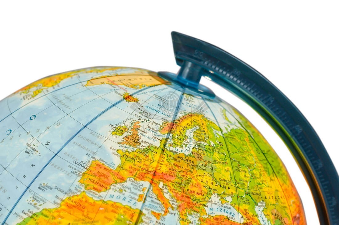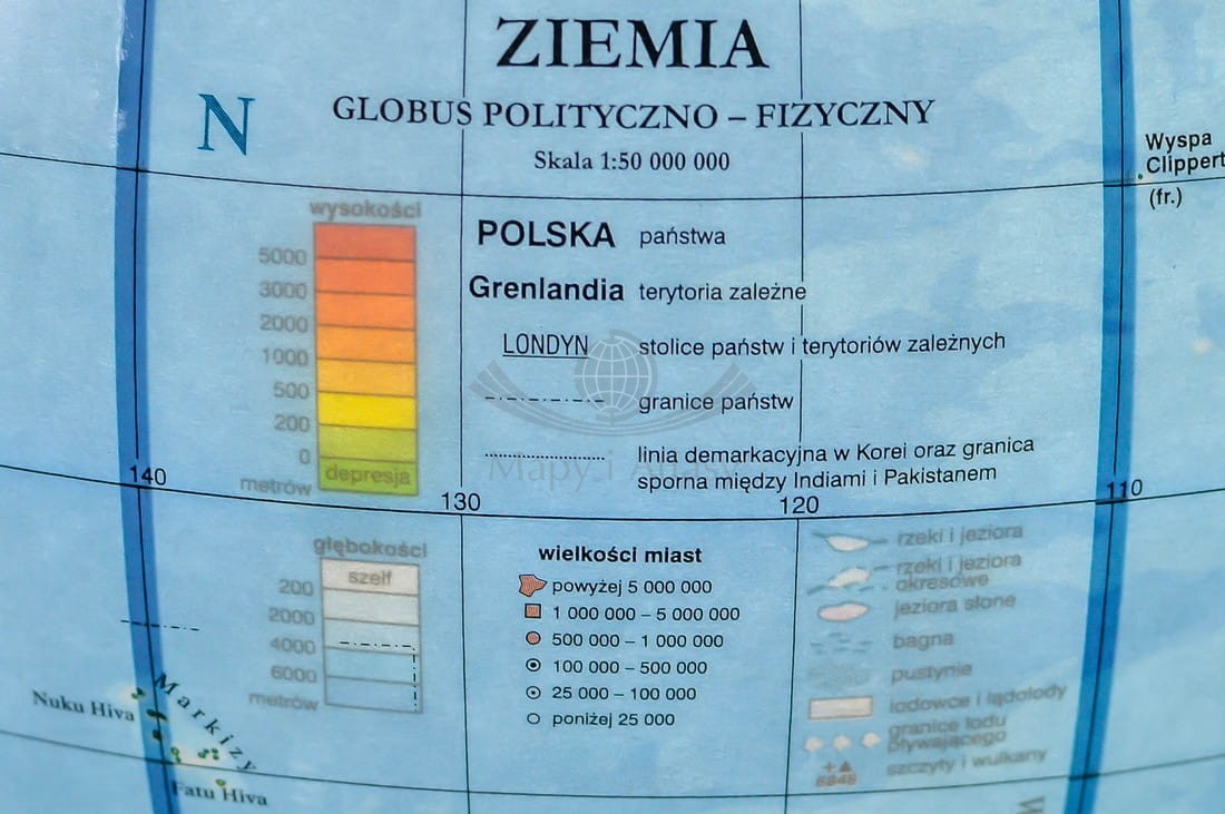 Na globusie zaznaczono m.in.:
