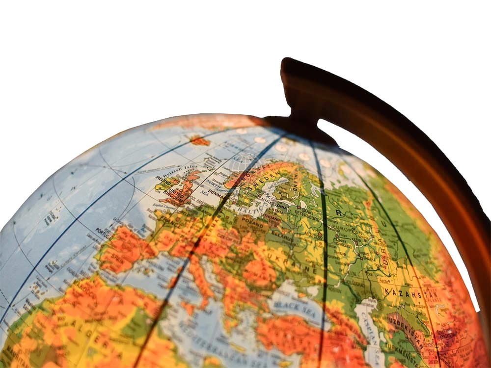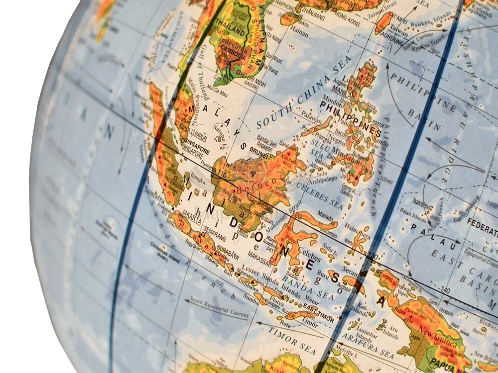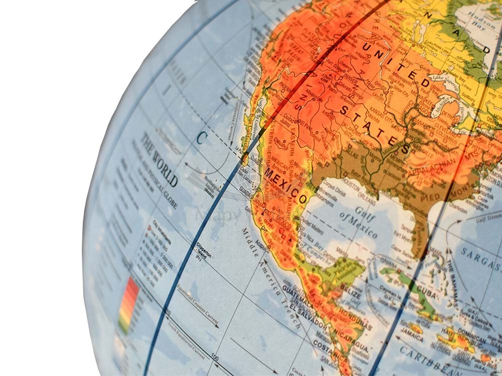Na globusie zaznaczono m.in.: