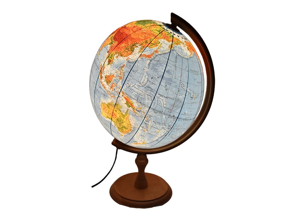 Po włączeniu zamieszczonej w środku żarówki ukazuje się kartografia fizyczna.