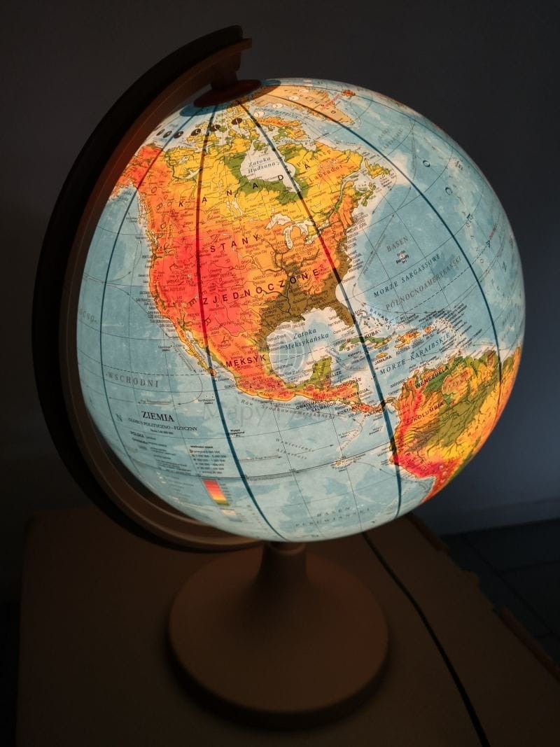 Po włączeniu zamieszczonej w środku żarówki ukazuje się kartografia fizyczna.