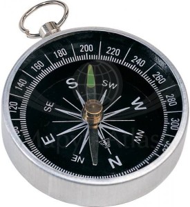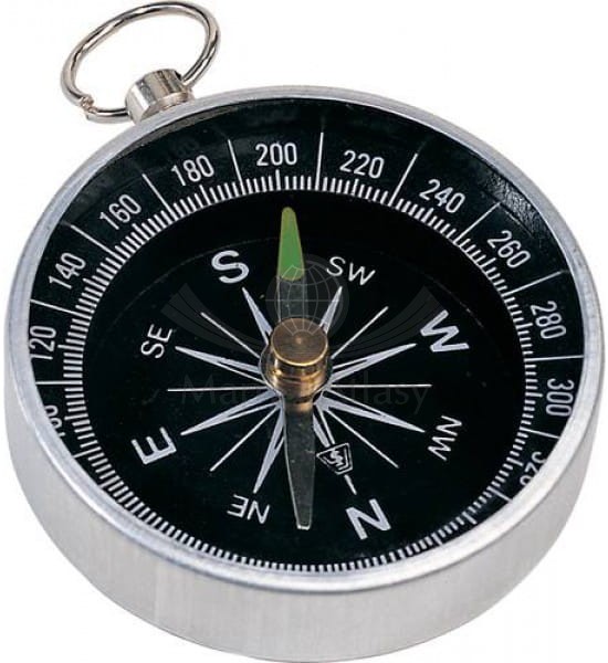 Kompas z lekkiego metalu o średnicy 4,5 cm. Posiada kółko umożliwiające zawieszenie go np. na sznurku. Dzięki niewielkim rozmiarom i wadze jest idealny również dla małych podróżników.