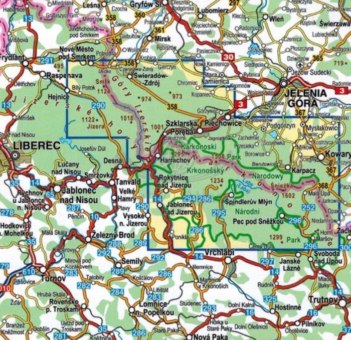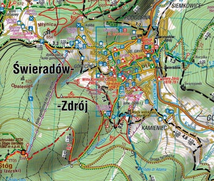 Publikacja zawiera dodatkowo informator turystyczny o najciekawszych atrakcjach oraz plany (centra miast): Świeradów-Zdrój, Karpacz, Harrachov i Szpindlerowy Młyn oraz mały.