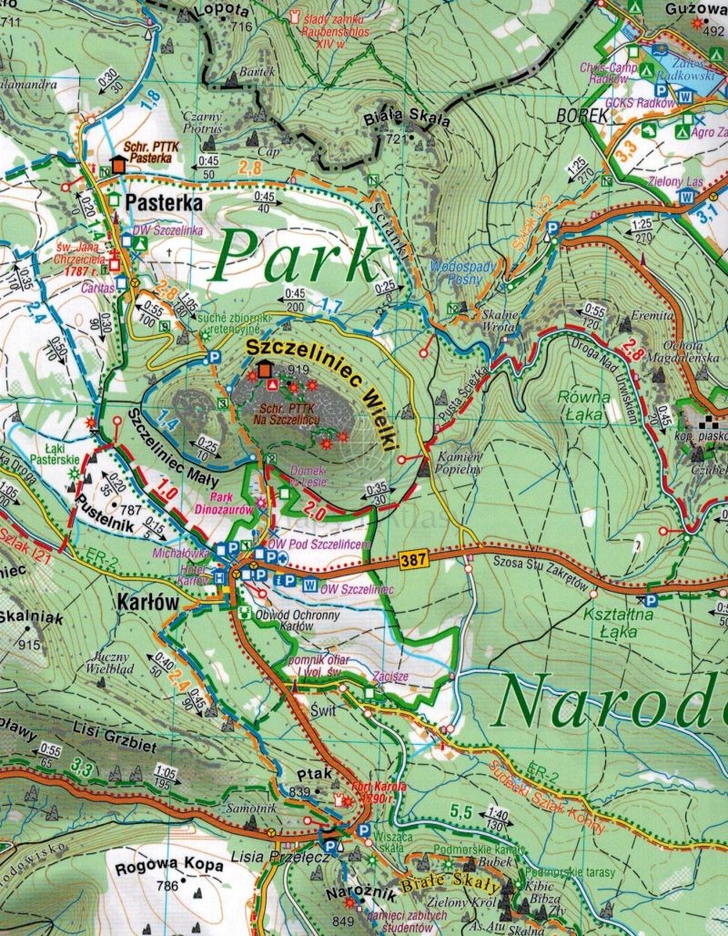 - początek, długość, czas przejścia oraz przewyższenie szlaku,