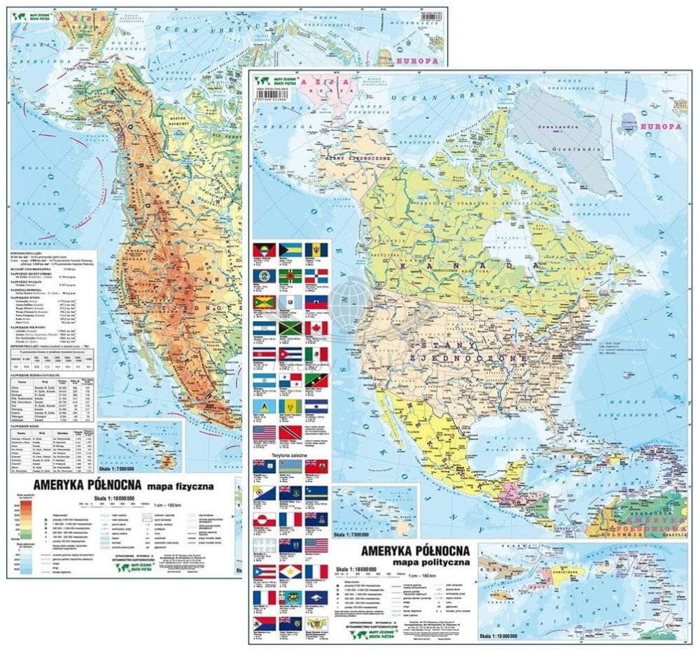 4. Dwustronna mapa podręczna Ameryki Północnej – fizyczna i polityczna w skali 1:18 000 000. Wymiary: 49 x 62 cm.