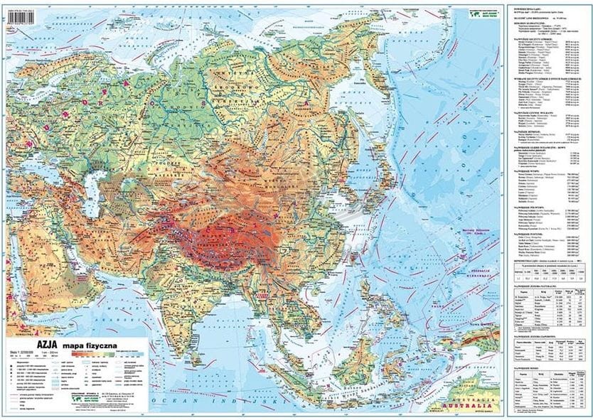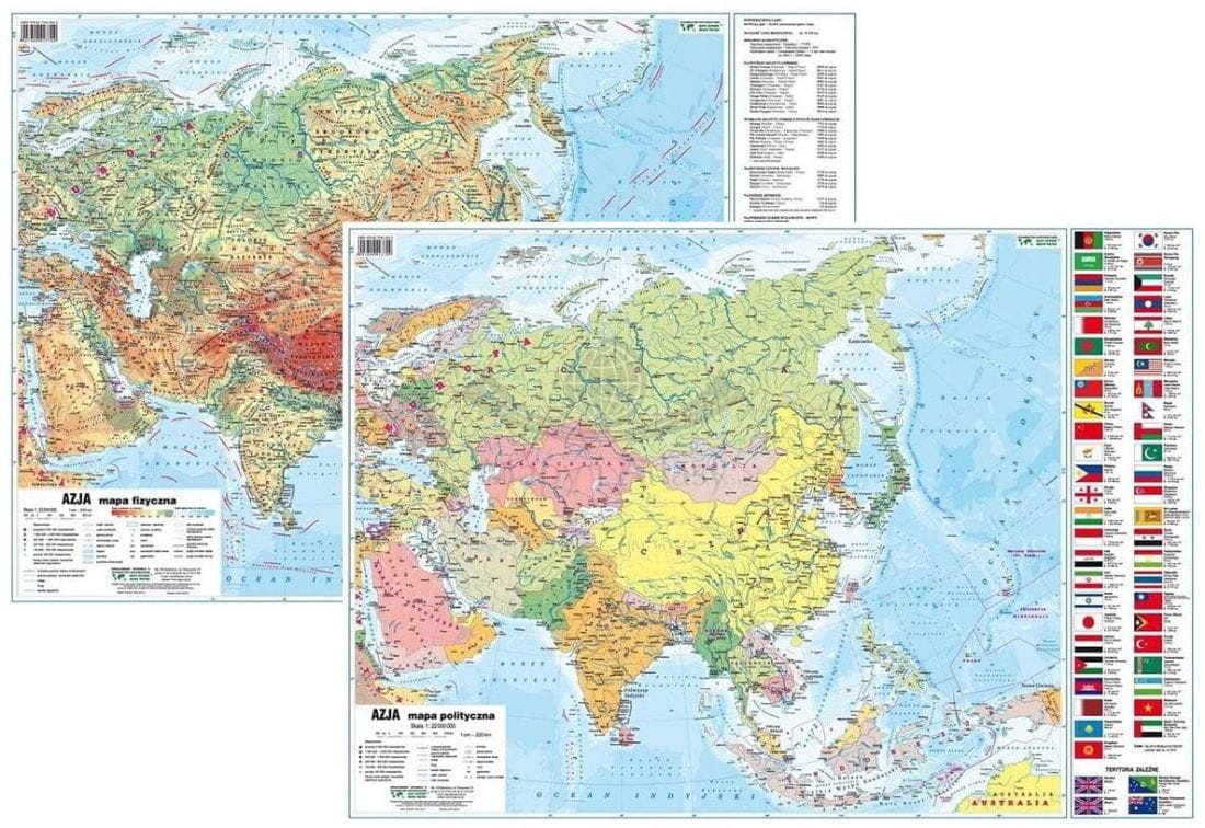 6. Dwustronna mapa podręczna Azji – fizyczna i polityczna w skali 1:22 000 000. Wymiary: 67 x 47 cm.