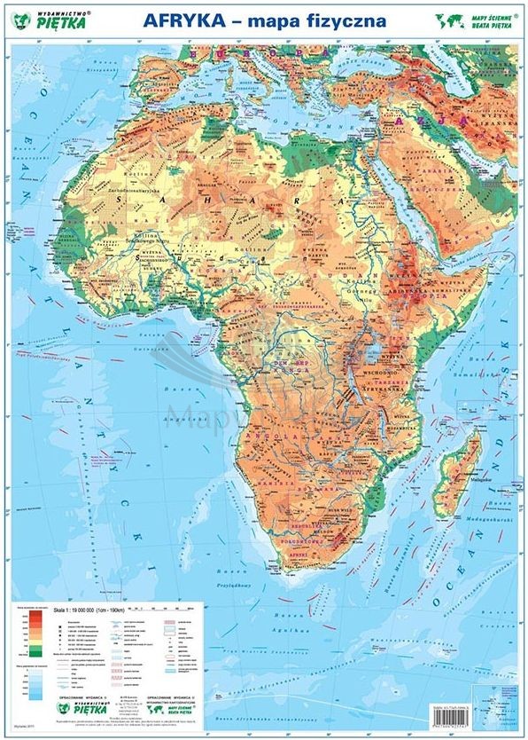 7. Dwustronna mapa podręczna Afryki – fizyczna i polityczna w skali 1:19 000 000. Wymiary: 47,5 x 67 cm.