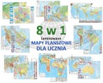 Polska, świat, kontynenty. Mapa podręczna planszowa laminowana. Zestaw 8 map dla ucznia