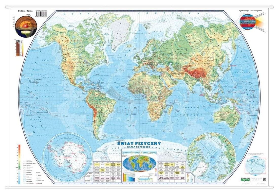 3. Dwustronna mapa ścienna świata – fizyczna w skali 1:57 000 000 i polityczna w skali 1:55 000 000. Wymiary: 76 x 52 cm.