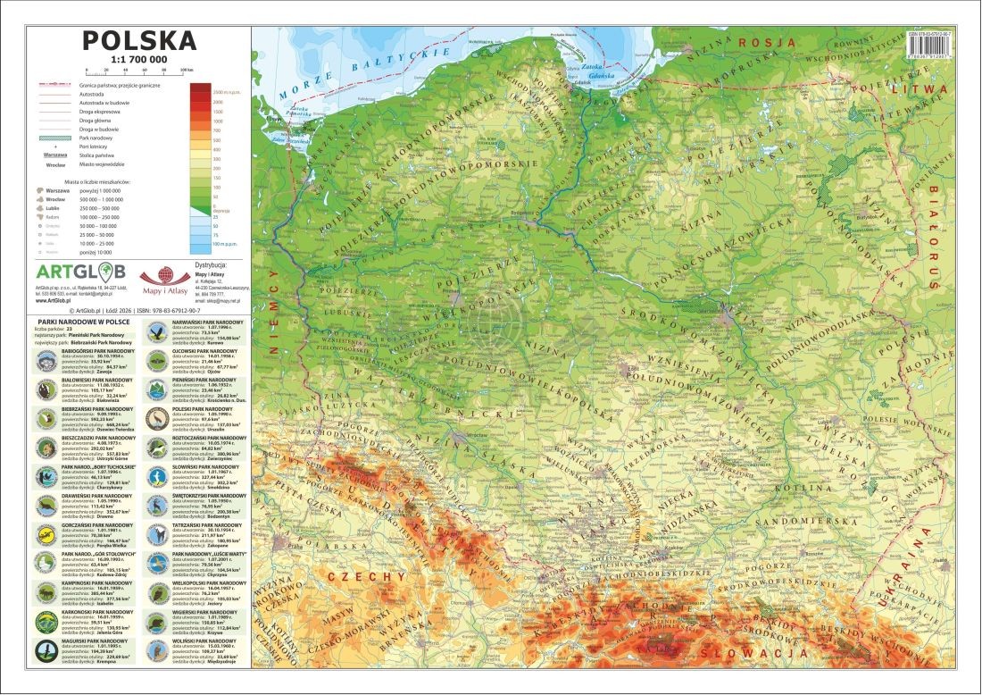 1. Dwustronna podkładka: mapa Polski – administracyjna i fizyczna w skali 1: 1 700 000 (wydanie 2026).