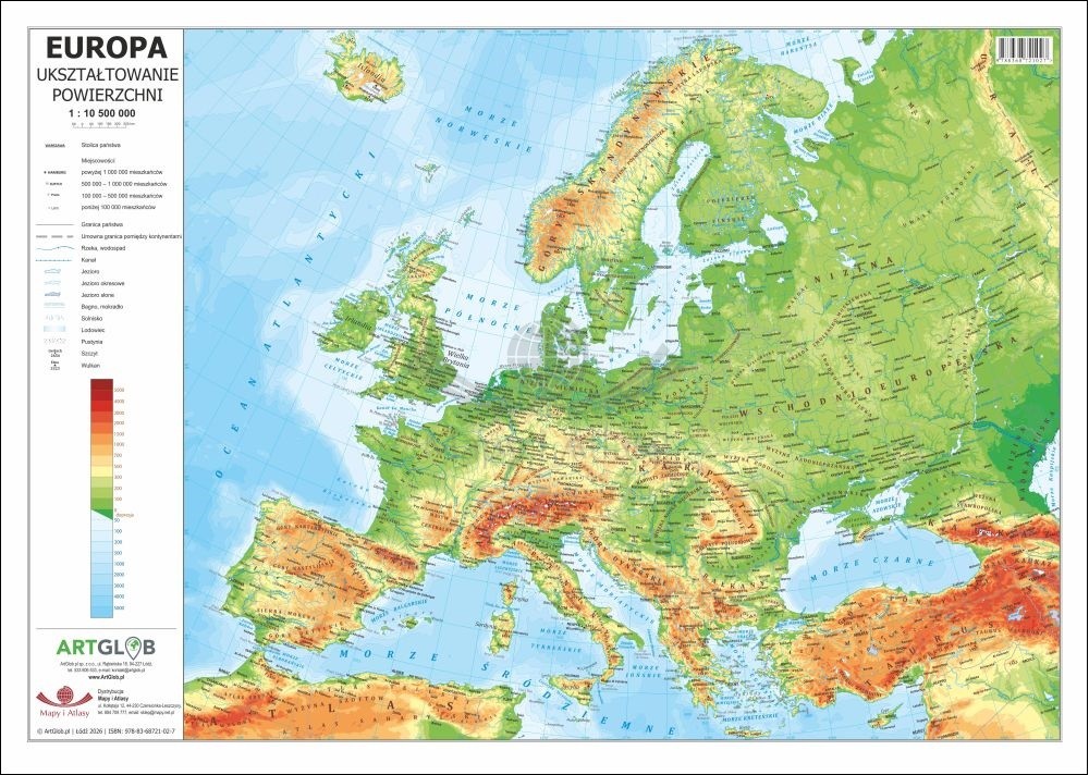 2. Dwustronna podkładka: mapa Europy – polityczna i fizyczna w skali 1:10 500 000 (wydanie 2026).