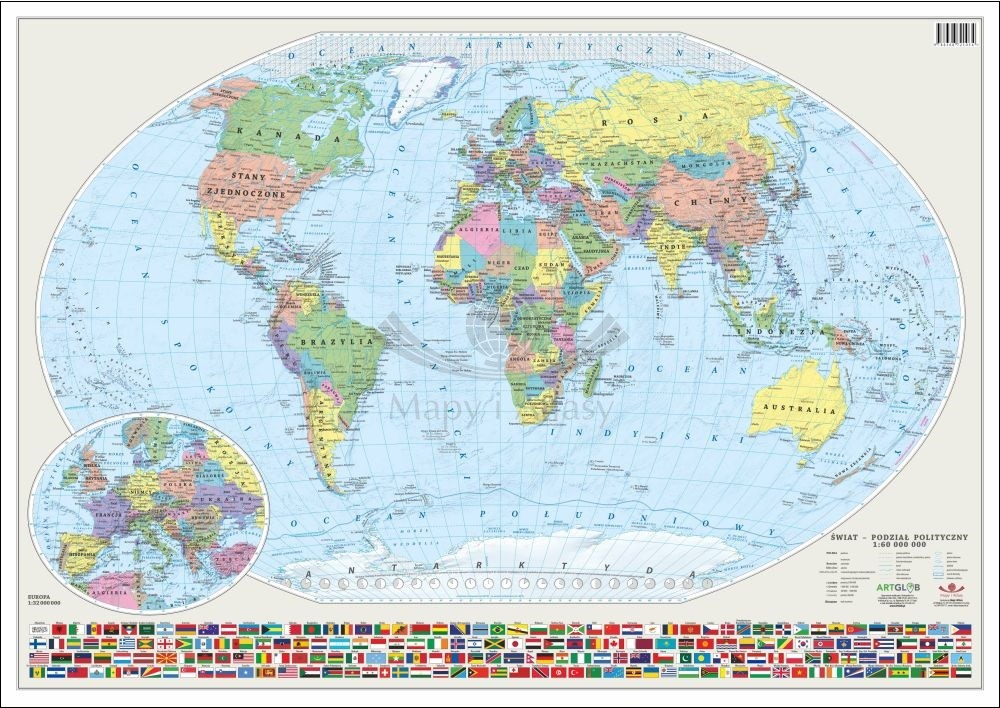 3. Dwustronna podkładka: mapa świata – polityczna i fizyczna w skali 1:60 000 000 (wydanie 2026).