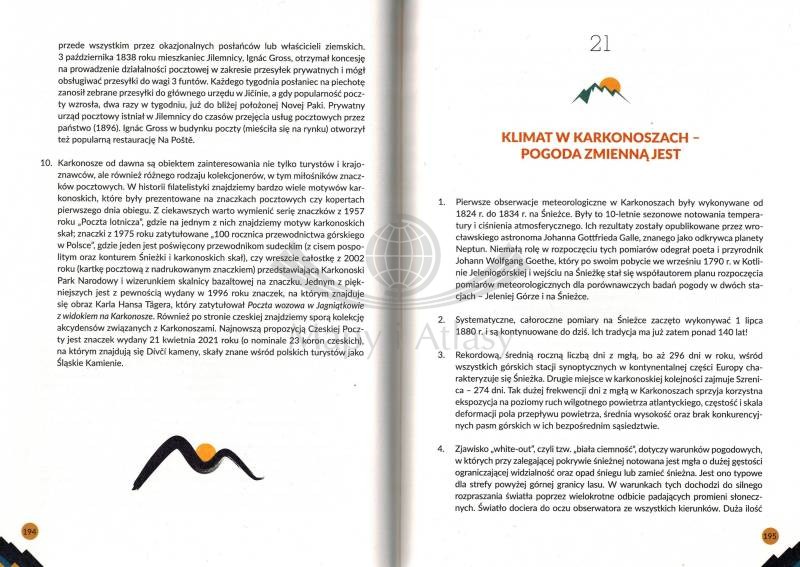 Porośnięte gęstym lasem, mroczne i niedostępne, zamieszkane przez dzikie zwierzęta i demony, były uważane za królestwo legendarnego Ducha Gór. Dziś stanowią jedną z największych atrakcji turystycznych Sudetów, a górująca nad nimi Śnieżka z roku na rok bije rekordy popularności wśród najczęściej odwiedzanych miejsc na mapie Dolnego Śląska. Miłośnicy Karkonoszy doskonale zdają sobie sprawę z tego, że nie sposób zebrać całej nagromadzonej przez wieki wiedzy o tych górach 555 zagadek o Karkonoszach to małe kompendium tego, co warto o nich wiedzieć. Wszystko, co w nich najciekawsze, unikatowe, osobliwe, a przede wszystkim zagadkowe, znalazło się w tej książce. Autorzy starają się w przystępny i rzeczowy sposób ukazać esencję tych gór. Warto udać się z Anią i Waldkiem w „zagadkową podróż”, na spotkanie z ludźmi, krajobrazami, przyrodą i dziedzictwem Karkonoszy.