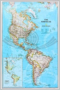 Mapa Ameryki Północnej i Południowej w skali 1:19 100 000 w wersji do wpinania wydawnictwa National Geographic.