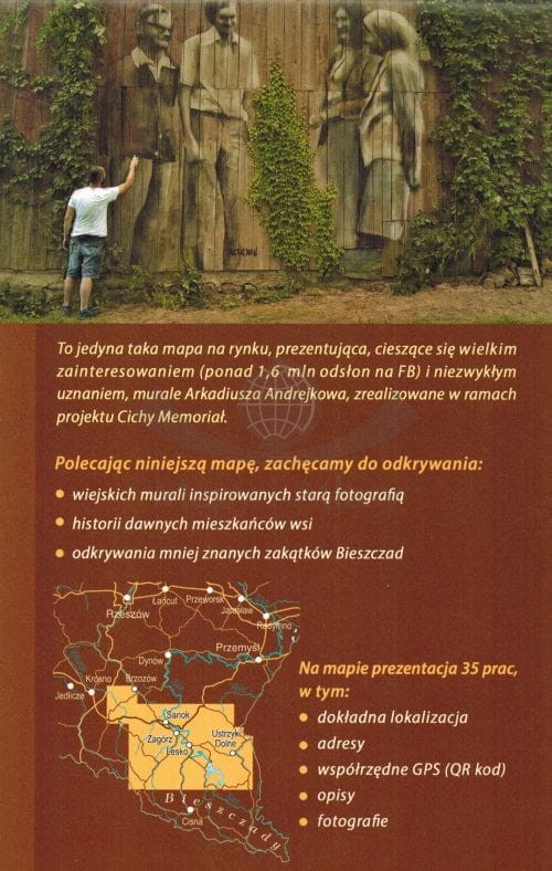 Składana mapa w skali 1:55 000 prezentująca, cieszące się wielkim zainteresowaniem (ponad 1,6 mln odsłon na FB) i niezwykłym uznaniem, murale Arkadiusza Andrejkowa, zrealizowane w ramach projektu Cichy Memoriał.