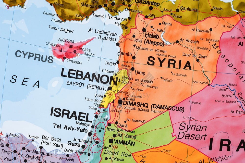 Kraje objęte zasięgiem mapy: Turcja, Gruzja, Armenia, Azerbejdżan, Turkmenistan, Uzbekistan, południowa część Kazachstanu, Kirgistan, Tadżykistan, Afganistan, Pakistan, Iran, Irak, Syria, Libia, Izrael, Jordania, Egipt, północna część Sudanu, Arabia Saudyjska, Bahrajn, Kuwejt, Katar, Zjednoczone Emiraty Arabskie, Oman, Erytrea.