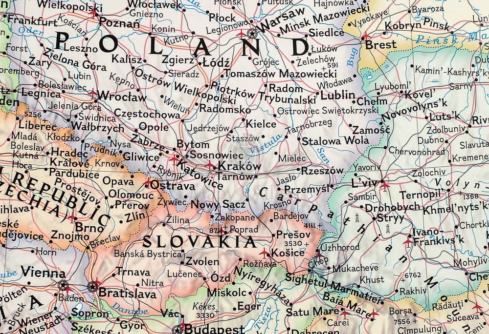 Mapa gotowa do zawieszenia na ścianie jako tablica. Na czas transportu mapa jest zabezpieczana narożnikami z pianki i opakowaniem kartonowym.