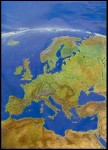 Mapy panoramiczna prezentująca rzut satelitarny Europy w ramie drewnianej.