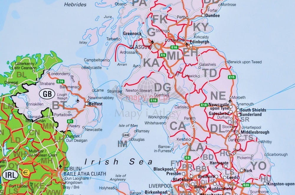 Mapa Europy w skali 1:3 600 000 z kodami pocztowymi wersji do wpinania.