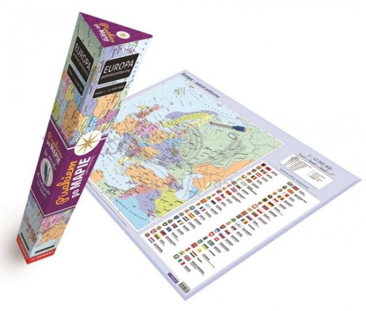 Europa. Laminowana mapa polityczna. Pisakiem po mapie. Demart