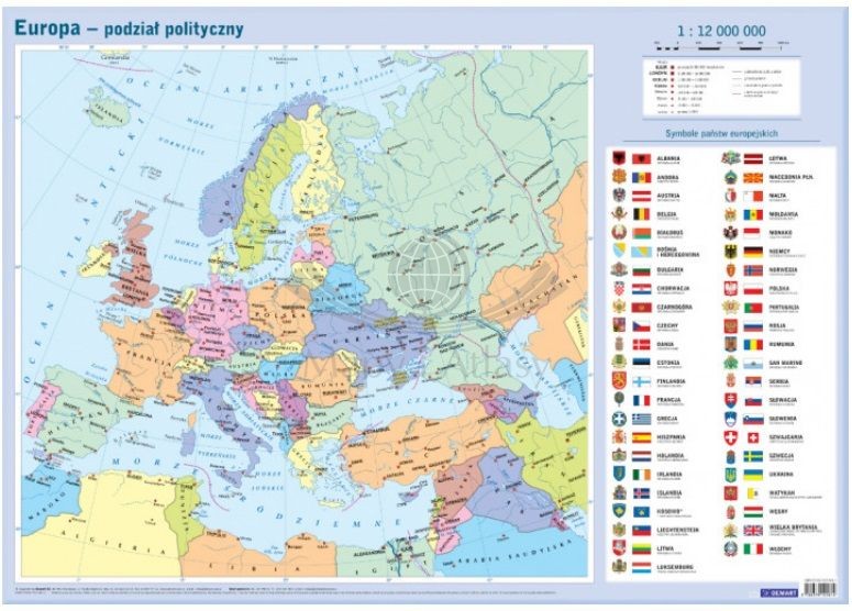 Laminowana mapa Polityczna europy w skali 1:12 000 000 wydawnictwa Demart.