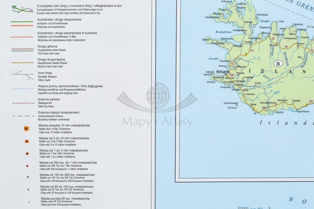 Polityczno-drogowa mapa Europy w skali 1:4 300 000 w wersji do wpinania.