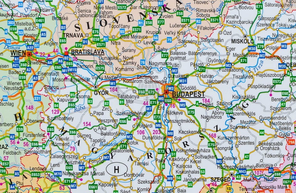 - numerację dróg z odległościami w km. przy drogach,