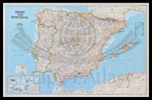 Hiszpania i Portugalia 1:2 074 000. Mapa w ramie drewnianej. National Geographic