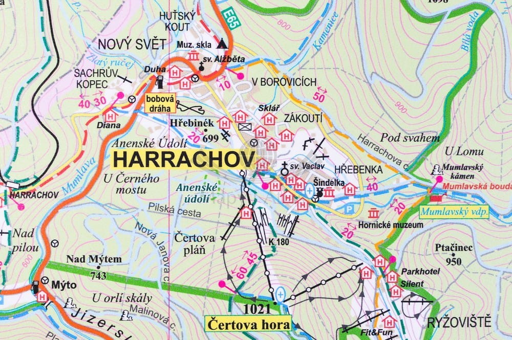 - wyciągi, trasy zjazdowe, trasy biegowe, szlaki turystyczne, czasy przejścia (w minutach), ścieżki przyrodnicze,