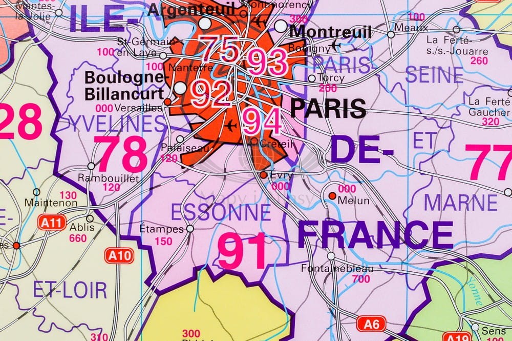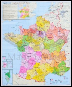 Francja 1:1 000 000. Mapa administracyjna w ramie drewnianej. Kody pocztowe. ST